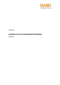 Tietoperusta muodostuu huumorista, sen käsitteistä ja käyttötavoista sekä markkinointiviestinnästä ja sen eri keinoista. Työn tutkimusmenetelmänä käytetään laadullista tutkimusta. Analysoitavina aineistoina toimivat Kalevan uutiskirjeet vuosilta 2013 ja 2015–2016 sekä yritysmyyjien teemahaastatteluista saatu aineisto. Analyysimuotoina käytetään sisällönanalyysiä ja teemoittelua.