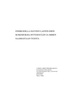Opinnäytetyö käsittelee ensikodilla olevien lasten isien kokemuksia isyydestään, ensikodilla olemisesta sekä omaan isyyteensä saamaansa tukea. Tutkimuksen tarkoituksena on selvittää miten isät ovat kokeneet isyyden tuomat elämänmuutokset, ensikodin arjen ja heidän saamansa tuen niin ensikodilta kuin muualtakin. Tutkimuksen tavoitteena on tuottaa uutta ja hyödyllistä tietoa ensikodilla olevien lasten isien tuen tarpeesta.