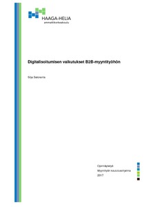 Tämän tutkimuksellisen opinnäytetyön tavoitteena on selvittää, mikä vaikutus digitalisoitumisella on B2B-myyntityöhön ja sen työtehtäviin.