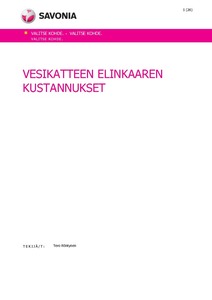 Opinnäytetyön tulokseksi saatiin kuntokartoitus ko. kohteeseen, ehdotus pikaisista korjaustehtävistä, materiaalikustannukset ja elinkaarikustannus kahdelta eri vesikatemateriaalilta.