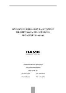 Opinnäytetyön tarkoituksena oli selvittää, miten hoidollinen rajoittaminen näkyy ikääntyneiden hoitotyössä tehostetun palveluasumisen yksikössä hoitajien kuvaamana. Tavoitteena oli saada tietoa siitä, millaista hoidollista rajoittamista yksikössä käytetään, miten arvioidaan asukkaan itsemääräämiskykyä sekä miten yksikössä ennaltaehkäistään rajoitustoimenpiteiden käyttöä.