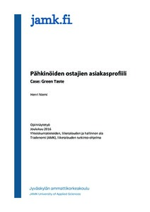 Opinnäytetyön tarkoituksena oli tutkia, millainen on pähkinöitä ostava kuluttaja. Toimeksiantajana toimi Green Taste Oy, jolla oli tarve selvittää, miksi kuluttajat ostavat pähkinöitä ja mihin he niitä käyttävät. Green Taste ei ollut toteuttanut asiakastutkimuksia, joten ostajien ostomotiiveista, kulutustottumuksista ja mielipiteistä ei ollut tietoa. Green Taste tarvitsi myös työkalua digitaalisen markkinoinnin suunnittelua ja toteutusta varten. Tarpeisiin, ostomotiiveihin, kulutus- ja käyttötottumuksiin sekä mielipiteisiin perustuva asiakasprofilointi todettiin käytännölliseksi tavaksi kuvata ostajista koostuvaa ryhmää.