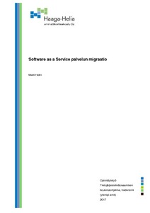 Tässä työssä esitetään Software as a Service (SaaS) palvelun migraatio yhdeltä konesalitoimittajalta toiselle. Migraatio tehtiin projektityönä. Projekti jakautuu viiteen osaan, kilpailutus-, määritys-, toteutus-, testausvaihe ja tuotantoon siirto. Projekti alkoi tammikuussa 2015 ja päätettiin kesäkuussa 2016. Projektin seurantaan ja tiedottamiseen kiinnitettiin erityistä huomiota sen laajuuden vuoksi. Projekti pyrittiin toteuttamaan tavalla, josta oli vähiten vaivaa asiakkaille.