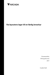 Det här examensarbetet behandlar layout och de lagar som kan anpassas till printdesign. Syftet är att presentera den broschyr som framtagits för uppdragsgivaren och föreningen Studentmissionen. Med hjälp av teorin går jag igenom broschyren sida för sida med hjälp av det mätinstrument som jag har tillverkat för examensarbetet. Som metod för att analysera broschyren valde jag en semiotisk analys. En semiotisk analys innebär att man analyserar reklambudskap och bilder och dess djupa mening. Arbetet är avgränsat så att teorin endast berör det som är specifikt för den broschyr som framtagits och sådant som berör printdesign. Jag valde att problematisera framtagningen av broschyren i samband med att jag praktiserade på föreningen. Jag vill med det här arbetet få svar på frågan hur man tillverkar en broschyr som är både attraktiv och lärande. Uppdragsgivarna söker en modern broschyr som ska ges ut i alla svenskspråkiga studiestäder i Finland. Den semiotiska analysen visar att broschyren är lyckad och att endast några detaljer i den, som gäller bilderna och textarrangemanget, kunde ändras. This thesis is made as a project for Studentmissionen. I led the project for a new flyer during my internship and this thesis will tell you about layout according to Bergströms theories. As my result, I will present the final version of the flyer. Examination method for my thesis is semiotic analysis. I will analyze the brochure page by page mostly from a denotative and connotative perspective. I will try to explain that everything communicates and motivate for how the elements in the brochure are created. My analysis shows that the brochure is well made and that it fulfills its promise of being both attractive and informative. The analysis also shows that a few changes in the layout could have been made. The pictures don’t show much of the organization in action and they are all black and white for which I am now critical to. The text layout could be arranged in a way that it would be more readable too.