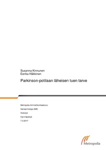 Tämän toiminnallisen opinnäytetyön tarkoituksena oli selvittää Parkinsonin tautia sairastavien läheisten tuen tarpeita ja tavoitteena oli tarjota tietoa Suomen Parkinson-liitolle Parkinsonia sairastavien läheisille suunnattujen tukimuotojen kehittämiseksi. Työn aihe on lähtöisin Parkinson-liitolta ja Parkinsonin tautia sairastavien läheisiltä.