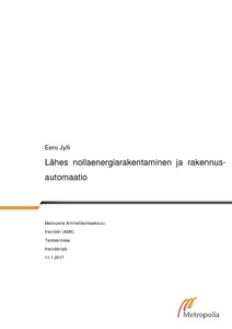 Tämän opinnäytetyön tarkoituksena oli tutkia lähes nollaenergiarakennuksen käsitteitä ja antaa suuntaviivainen näkemys uudistuvasta rakennusten energiatehokkuuden lainsäädännöstä Suomessa sekä säädöksen vaikutuksesta rakennusautomaatioon. Työssä perehdyttiin myös rakennusautomaatioon ja tarkemmin energiatehokkaan rakennusautomaation suunnitteluun.