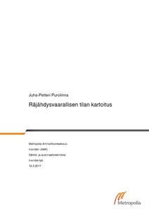 Insinöörityön aiheena oli räjähdysvaarallisen tilan (Ex-tila) kartoitus. Työ tehtiin Helsingin Seudun Ympäristöpalvelut -kuntayhtymän (HSY) Suomenojan jätevedenpuhdistamolle. Työn tarkoituksena oli kartoittaa jätevedenpuhdistamolla sijaitseva Ex-tilaksi luokiteltu metanolipumppuhuone ja varmistaa, että tilan sähkölaitteet ja dokumentointi ovat nykyisten räjähdyssuojausvaatimusten mukaisia. Lisäksi tavoitteena oli, että HSY voisi soveltaa työn tuloksia jätevedenpuhdistamon muihin räjähdysvaarallisiin tiloihin.