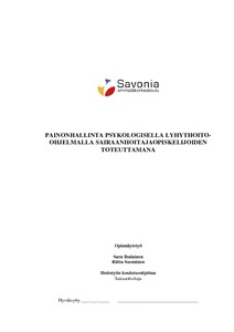 Painonhallinta psykologisella lyhythoito-ohjelmalla sairaanhoitajaopiskelijoiden toteuttamana