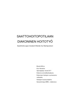 Brilli, Muska & Heinänen, Kirsi. Saattohoitopotilaan diakoninen hoitotyö – saattohoito-opas hoivakoti Attendo Oy Olarinpuistoon. Diak, Helsinki, kevät 2017, 46s., 1 liite.