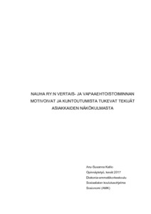 Kallio, Anu-Susanna: Nauha ry:n vertais- ja vapaaehtoistoiminnan motivoivat ja kuntoutumista tukevat tekijät asiakkaiden näkökulmasta. Kevät 2017. 45 sivua. Diakonia-ammattikorkeakoulu, sosiaalialan koulutusohjelma. Sosionomi (AMK).