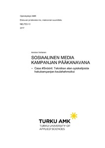 Tässä opinnäytetyössä tutkin sosiaalista mediaa markkinointikampanjan pääkanavana. Avaan opinnäytetyössäni myös #Snöörit-projektia, joka on Vaasan ammattikorkeakoulun sekä Vaasan yliopiston yhteishakukampanja ja sen on tuottanut C2 Advertising. #Snöörit on nettivetoinen realitysarja YouTubessa, jonka päätähtinä nähdään yhdeksän tekniikan opiskelijaa. He tuottavat pääjaksojen ohessa sisältöä myös omille kanavilleen – pääasiassa YouTubeen ja Facebookiin. Peilaan tutkimustietoani kyseiseen projektiin sekä opiskelijoiden matkaan sisällöntuottajiksi suhteessa lähtökohtiin, puitteisiin sekä tavoitteisiin.