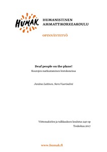 Opinnäytetyömme tavoitteena oli kartoittaa kuurojen matkustuskokemuksia suomalaisissa lentoyhtiöissä. Kartoituksen tavoitteena oli lisätä kielellistä saavutettavuutta ja parantaa kuurojen tiedonsaantia, turvallisuutta sekä viihtyvyyttä lennon aikana. Tarkoituksena oli osoittaa tutkimustulosten perusteella aiheen ajankohtaisuus ja tärkeys, sekä luoda yhteistyöpohja eri toimijoiden välille. Opinnäytetyössä luotiin Finnairille kehitysideoita, joiden avulla he voivat tulevaisuudessa parantaa kielellistä yhdenvertaisuutta lennoillaan. Tasa-arvo ja yhdenvertaisuus ovat nyky-yhteiskunnassamme ajankohtainen aihe, jotka ovat ihmisen perusoikeuksia ja turvattu laissa. Opinnäytetyön tilaajana on Kuurojen Liitto.