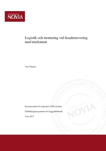Tämän opinnäytetyön tarkoitus on suunnitella ja tutkia ratkaisuja julkisivuelementtien asennukseen sekä työmaakohtaisiin ratkaisuihin vanhemmille kerrostalorakennuksille, jotka ovat lisäeristyksen ja uuden julkisivun tarpeessa. Grindstugan Vöyrillä, kaksikerroksinen rivitalo vuodelta 1966 on tutkittu pilottiprojektina tässä työssä. Opinnäytetyö on tehty yhteistyössä Yrkeshögskolan Novia ja tutkimus- ja kehitysprojektin Nordic Builtin kanssa. Sisältö koostuu suurimmalta osalta omista suunnitelmista ja ratkaisuista sekä internetistä ja kirjoista.