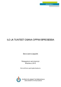 Opinnäytetyö käsittelee sitä, miten tunteet ja koettu ilo vaikuttavat oppimiseen. Työssä tarkastellaan kirjallisten lähteiden ja kirjoittajan omien kokemusten pohjalta mitä on oppimisen ilo, miten se syntyy, mikä sen voi estää sekä niitä keinoja, joilla sen voi houkutella esiin.