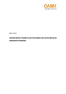 Opinnäytetyön tilaaja oli Tulevaisuuden tuotantoteknologiat FMT -tutkimusryhmä, joka kuuluu Oulun yliopiston alaisuudessa toimivaan Kerttu Saalasti Instituuttiin. Työ on tehty osana H-CHP-projektia, jonka tarkoituksena on suunnitella ja rakentaa prototyyppi kiinteitä biopolttoaineita käyttävästä mikro-CHP-laitoksesta syrjäisillä seuduilla sijaitsevien kiinteistöjen energiantuotantoon. Opinnäytetyössä käytiin läpi lyhyesti erilaisia mikro-CHP-teknologioita ja perehdyttiin mäntähöyrykonetta käyttävän mikro-CHP-laitoksen komponenttien mitoitukseen ja valintaan. Tämän lisäksi työhön sisältyi laskennallinen osuus, jonka tavoitteena oli selvittää mikro-CHP-laitoksen polttoainekustannukset ja kuinka paljon niitä voidaan vähentää lisäämällä laitoksen rinnalle aurinkosähköjärjestelmä. Polttoainekustannuksia verrattiin myös ostosähkön kustannuksiin. Opinnäytetyö tehtiin laskennallista osuutta lukuun ottamatta kirjallisuusselvityksenä käyttäen ulkomaista ja kotimaista kirjallisuutta ja internet-lähteitä ja -artikkeleita.