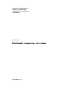 Tämän opinnäytetyön tarkoituksena oli tutkia digitalisaation vaikutuksia maksamisen palveluihin sekä uuden PSD2-maksupalveludirektiivin keskeisimpiä muutoksia ja vaikutuksia. Työssä oli tarkoitus esitellä perinteisten pankkien maksamisensovelluksia ja muita toimijoita sekä analysoida markkinatilannetta. Lisäksi työssä oli tavoitteena sivuta maksupalveluiden kehitystä myös muualla maailmassa.