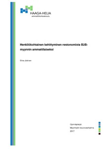 Työn tavoitteena on esittää kehityssuunnitelma kirjoittajan urapolusta restonomista B2B- myyjäksi. Kirjoittaja reflektoi opinnäytetyössä käsitellyn teorian ja omien tuotoksien pohjalta itselleen kehityssuunnitelman. Pohdintaan sisältyy kirjoittajan näkemyksiä siitä, miten aiemmin suoritetut opinnot ovat vaikuttaneet kehittymiseen, missä tilanteessa hän on tällä hetkellä, ja missä hän kokee eniten tarvetta kehittyä.