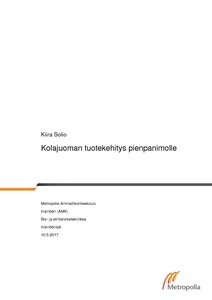 Tämä opinnäytetyö tehtiin Lohjalla sijaitsevalle Paloaseman Panimolle, joka on Nummen kylällä sijaitseva yhden miehen pienpanimo. Työn tarkoituksena on kehittää kolajuoma, jonka avulla Paloaseman Panimo voisi laajentaa tuotevalikoimaansa oluista myös virvoitusjuomiin.