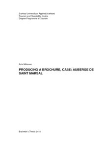 In the theoretical part of the study the main aim was to determine the central concepts of marketing communication related to brochure production. Also the technical issues of brochure designing, such as choosing content and materials were discussed. The work was carried out as a project based thesis and the information was gathered from literature related to marketing communication in general and in the field of tourism, from the Internet and by interviews.