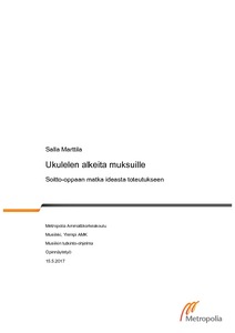 Opinnäytetyönäni olen luonut ukulelen alkeisoppaan Muksulele – Ukulelen alkeita muksuille. Opas sisältää 18 uutta lastenlaulua sekä ohjeet ukulelen hallintaan ja neljän perussoinnun soittamiseen. Lisäksi laulujen yhteyteen olen kirjannut vinkkejä, kuinka soittimen kanssa kannattaa lapsiryhmässä edetä ja miten lauluja voi musiikkileikkikoulussa hyödyntää.
