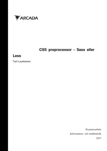 I detta examsarbete diskuteras om vilken CSS preprocessor är bättre Sass eller Less. Båda preprocessorer var gjorda med samma idé, att göra skrivande av långa CSS koder lättare. Detta abete hänvisar till flera artiklar och webbsidor som är gjorda av forskare eller de som gjorde Less eller Sass. Målet med arbetet är att hitta skillnaderna mellan dem och vilken är bättre. I arbetet går jag igenom olika egenskaper, styrkor och svagheter båda preprocessorer har, jag gör en grundläggande underökning på deras egenskaper och hurdana portar de har. Hur skall CSS preprocessorer användas och hur nyttiga det är för olika arbeten som kräver CSS. I slutsatsen förklarar jag vilken preprocessor är bättre och var-för. In this thesis, I discuss which CSS preprocessor is better Sass or Less. Both preprocessors were made with the same idea, making the writing of long CSS coding easier. This work refers to several articles and websites made by a re-searcher or those who wrote Less or Sass. The aim of the work is to find the dif-ferences between the two preprocessors and which one is better. In my work, I go through the different properties, strengths and weaknesses of both prepro-cessors, I do a basic examination of their properties and their ports. How should CSS preprocessors be used and how useful it is for different tasks that require CSS. In my conclusion, I explain which preprocessor is better and why.