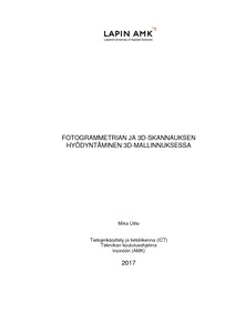 Tavoitteena oli tehdä 3D-malleja valokuvista monen näkymän stereo-teknologiaa hyö-dyntävällä ohjelmalla. Myös 3D-skannausta tutkittiin rajallisesti. Opinnäytteessä käsi-tellään kuvamittaukseen ja 3D-skannaukseen liittyviä teknologioita ja niitä hyödynne-tään jatkossa 3D-tulostukseen ja mallien käyttöön peliympäristöissä. Kyseiset menetel-mät liittyvät vahvasti digitaaliseen valokuvaukseen, joten teoriaosio keskittyi myös yk-sityiskohtaisesti siihen.