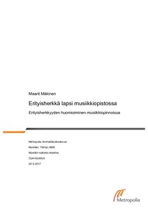 Tässä opinnäytetyössä tarkastellaan miten opettajat voisivat huomioida erityisherkkyyden musiikkiopisto-opinnoissa. Erityisherkkyys on synnynnäinen temperamenttipiirre, joka tulisi huomioida opetustilanteessa ja siihen liittyvissä vuorovaikutusilmiöissä. Noin viidesosa ihmisistä on erityisherkkiä temperamentiltaan. Opinnäytetyössäni olen analysoinut erityisherkkien lapsien toimintaa soittotunneilla ja musiikkiopinnoissa yleensä.