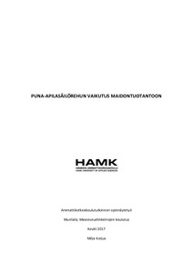 Tämän opinnäytetyön tavoitteena oli selvittää, voidaanko puna-apilan käytön lisäämistä lypsykarjatiloilla suositella. Työn toimeksiantaja oli Luonnonvarakeskus. Työssä tarkasteltiin puna-apilan vaikutuksia maidontuotantoon keväällä 2016 tehdyssä ruokintakokeessa. Kokeessa oli kolme eri seosrehuruokintaa, joista kaksi perustui heinäkasvisäilörehuun ja yksi puhtaaseen puna-apilasäilörehuun. Väkirehun osuus heinäkasviruokinnoilla oli joko 30 % tai 70 % ja puna-apilaruokinnalla 50 %.