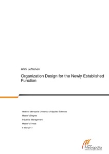 This Thesis focuses on organization design of the case organization that is needed due to the case company re-organizing its processes. The change from a matrix organization to a line management organization has been implemented but the processes, functions, roles, responsibilities and hierarchical structure still need to be defined for one particular function.