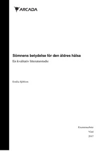 Tämä opinnäyte oli tilaustyö Loviisan kaupungilta. Opinnäytteen tarkoituksena oli saada käyttäjälle syvempi tietämys unen merkityksestä ikäihmisen terveydelle. Tutkimuskysymyksiä oli kaksi: 1. Miten luonnollinen ikääntyminen vaikuttaa unen laatuun? 2. Millä tavoin ulkoiset tekijät vaikuttavat ikäihmisen uneen? Teoreettisena viitekehyksenä toimi Katie Erikssonin (2000) teoria terveydestä mukaan lukien termit tervehenkisyys, terveys ja hyvinvointi. Työ tehtiin kirjallisena katsauksena sisältäen 13 tieteellistä artikkelia, jotka oli haettu Academic Search Elite, PubMed, ScienceDirect ja Google Scholar tietokannoista. Työn menetelmänä toimi sisällön analyysi (Kyngäs et al. 2011). Tuloksessa ilmeni, että ikääntyminen vaikutti ikäihmisen uneen eri tavoin ja ulkoisten tekijöiden vaikuttavan sekä negatiivisesti että positiivisesti unen laatuun. Erilaiset häiritsevät äänet sekä valoisuus hoitokodeissa oli yksi häiritsevä tekijä, kuten taas kohtuullinen liikunta ja terveellinen elämäntapa edistivät unen laatua. Toinen haittatekijä, joka nousi esiin oli lääkitys, jota käytetään hoitamaan muita sairauksia ja näiden lääkkeiden aiheuttamia uniongelmia. Luonnollinen ikääntyminen vaikutti sekä unen rakenteeseen, että uneen, josta tuli myös pinnallisempi. Lisäksi ikääntyminen vaikutti ikäihmisen vuorokausirytmiin ja tämä taas vaikutti ikäihmisen hyvinvointiin.