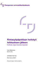 (2025)Tässä opinnäytetyössä tuotettiin selkeät kotihoito-ohjeet rintasyöpäleikattujen potilaiden dreenien käytöstä. Opinnäytetyössä selvitettiin, mitä on rintasyöpä, miten sitä hoidetaan, mitä tulee huomioida potilaan hoidossa ... -