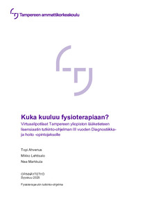 (2025)Opinnäytetyön tavoitteena oli kehittää Tampereen yliopiston lääketieteen tiedekunnan Diagnostiikka ja hoito -opintojakson sisältöä lisäämällä opiskelijoiden tietoa moniammatillisuudesta sekä fysioterapiaan ohjautuvuudesta ... -