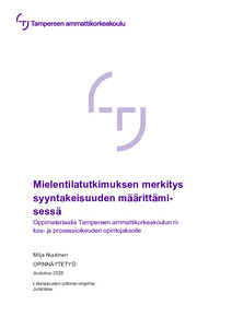 (2025)Tämän opinnäytetyön tarkoituksena oli toteuttaa Tampereen ammattikorkeakoulun rikos- ja prosessioikeuden opintojaksolle selkeä ja tiivis oppimateriaali sekä kirjallinen raportti mielentilatutkimuksesta ja sen merkityksestä ... -