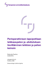 (2026)Tämän opinnäytetyön tarkoituksena oli selvittää, miten perioperatiivisten lapsipotilaiden leikkauspelkoa ja –ahdistusta voidaan lievittää leikkien ja pelien keinoin. Opinnäytetyön tavoitteena oli löytää keinoja hoitotyön ... -
