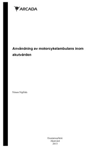 Moottoripyöräambulansseja käytetään pääasiassa isoissa kaupungeissa tavoittamisviiveen lyhentämiseen ja ensivasteyksikkönä. Tutkimuksen tavoite oli selvittää moottoripyöräyksikön hyödyt ja haitat ensihoidossa,