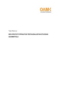 Opinnäytetyössä suunniteltiin testialustan etuosa NRC-prototyyppiautoon. NRC on Oulun ammattikorkeakoulun kehitysprojekti, jossa suunnitellaan ralliauto uuteen ralliautoluokkaan. Testialustan tavoitteena on toimia apuna alustan geometrian ja voimansiirron toiminnan tutkimisessa. Suunnittelussa tuli ottaa huomioon alustaan kiinnitettävät laitteet, käyttötarkoitus, materiaalivalinnat, valmistettavuus ja hinta.