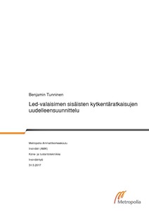 Tämä insinöörityö tehtiin Purso Oy:n toimeksiantona. Työn aiheena on Led-valaisimen sisäisten kytkentäratkaisujen uudelleensuunnittelu. Kehitysprojektissa jo olemassa oleville valaisimille suunniteltiin sisäiset kytkennät uudelleen asiakkaiden toiveiden sekä yrityksen tarpeitten pohjalta. Kytkentäratkaisuja suunniteltiin yhteensopivaksi neljälle eri valaisinmallille.