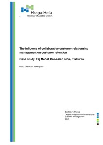 The influence of collaborative customer relationship management on customer retention : Case study: Taj Mehal Afro-asian store, Tikkurila