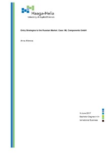 Internationalization significance grows constantly, and various SMEs around the world con-duct its processes on a regular basis today. Every firm analyses which country’s market is beneficial and profitable for its own business expansion. One of the biggest and demanding markets of the word is Russian market. Many SMEs are interested in cooperation with Russian entities, as well as the commissioner of the Thesis.