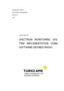 Tämä opinnäytetyö käsittelee radiospektrin monitorointiin liittyvää teoriaa ja kuvailee National Instruments Universal Software Radio Peripheral -ohjelmistoradiolla (USRP) toteutetun spektrinmonitorointijärjestelmän keskeisiä osia ja toimintoja. Työn tarkoituksena oli luoda syvempi ymmärrys tarvittavien komponenttien toiminnasta ja niiden aiheuttamista ongelmista käyttäen järjestelmän toteutusprosessia tukena ongelmien löytämistä varten.
