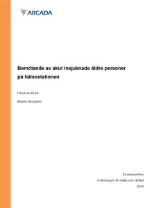 Denna studie är ett beställningsarbete av Esbo stad. Avsikten med denna studie är att ta reda på hur akut insjuknade äldre patienter över 75 år bemöts på hälsostationen ur vårdarnas synvinkel. Syftet är att förbättra kvaliteten på vården. Forskningsfrågorna för denna studie är: Hur bemöts åldringen på hälsostationsjouren? Hur kommunicerar vårdaren med åldringen på hälsostationsjouren?