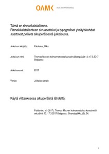Thomas Mooren kolmannettoista kansainväliset päivät 13.-17.3.2017 Belgiassa