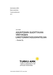Opinnäytetyön tavoitteena on selvittää, mitä asioita tulee huomioida asuntosijoittamisessa ja asuntoihin sijoittavan yrityksen liiketoimintasuunnitelmassa. Opinnäytetyössä on pyritty kertomaan asuntosijoittamisen keskeisiä asioita, jotta yritysten ja yksityishenkilöiden olisi helpompi aloittaa sijoittaminen.