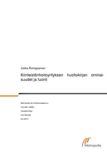 Tässä insinöörityössä selvitetään, millaisia ominaisuuksia kiinteistön huoltokirjan tulisi pitää sisällään niin, että huoltokirjat tunnistettaisiin hyödyllisiksi välineiksi kiinteistönhoitoyrityksille ja huoltokirjan muille käyttäjille. Insinöörityössä tutkitaan huoltokirjaa kiinteistönhoitoyrityksen tarpeiden kautta ja luodaan huoltokirja kiinteistönhoitoyrityksen sisäiseen käyttöön.