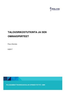 Olen kirjoittanut opinnäytetyöni talousrikostutkinnasta ja sen ominaispiirteistä. Tarkoitukseni on ollut päästä opinnäytetyössä mahdollisimman lähelle aikaisempaa koulutusta kauppatieteiden saralla. Talousrikollisuus vaikutti ylipäätään täsmennystä kaivanneelta osa-alueelta, jonka hahmottaminen oli hankalaa, jopa poliisiorganisaation sisällä. Tästä johtuen opinnäytetyöni tarkoituksena on auttaa lukijaansa hahmottamaan mitä talousrikollisuus ja talousrikostutkinta ovat ominaisine piirteineen.