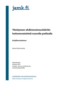 Yleinen ahdistuneisuushäiriö on ahdistuneisuushäiriön alaluokka. Nuorten ahdistuneisuushäiriöitä oli tutkittu suhteessa vähän verrattaen aikuisten ahdistuneisuushäiriöön. Opinnäytetyössä oli tarkoitus selvittää, miten 12–22 vuotiaiden nuorten häiriötä hoidetaan ja mikä oli tehtyjen tutkimusten valossa käytetyin hoitomenetelmä. Opinnäytetyö toteutettiin kirjallisuuskatsauksena. Opinnäytetyötä varten kerättiin tutkimuksia, jotka käsittelivät yleistyneen ahdistuneisuushäiriön hoitomenetelmiä nuorella potilaalla. Opinnäytetyön tavoite oli lisätä tietoa nuoren potilaan hoitomenetelmistä heidän kanssaan työskentelevien ammattihenkilöiden keskuudessa.
