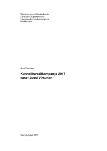 Tämä opinnäytetyö oli case-muotoinen, projektiluotoinen työ, vuoden 2017 kunnallisvaalikampanjasta. Projektin tavoitteena oli tehdä case-henkilölle onnistunut vaalikampanja. Opinnäytetyö toteutettiin toiminnallisen opinnäytetyömallin mukaisesti: kampanja oli projekti ja opinnäytetyö sen raportti. Opinnäytetyöntekijä oli projektissa mukana koko kampanjan ajan.