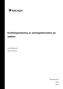käytetyin hakukone. Osumat analysoidaan erikseen. Myös laatu ja luotettavuus tutkitaan,