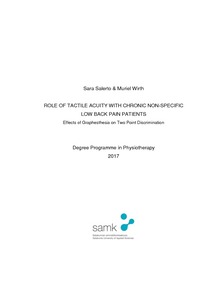 The aim of this thesis was to determine whether CNSLBP patients demonstrate disturbed tactile acuity and body perception as well as investigate whether Graphesthesia training influences their Two Point Discrimination outcomes. A literature review was made to declare the status of research and an experiment was conducted to test a Graphesthesia home training program on CNSLBP patients.