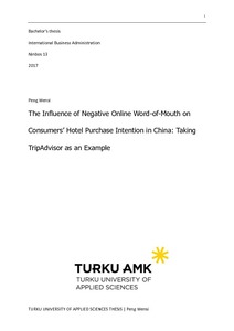 Purpose: The aim of this research is to investigate the influence of negative e-WOM on Chinese consumers’ hotel purchase intention, taking TripAdvisor as an example.
